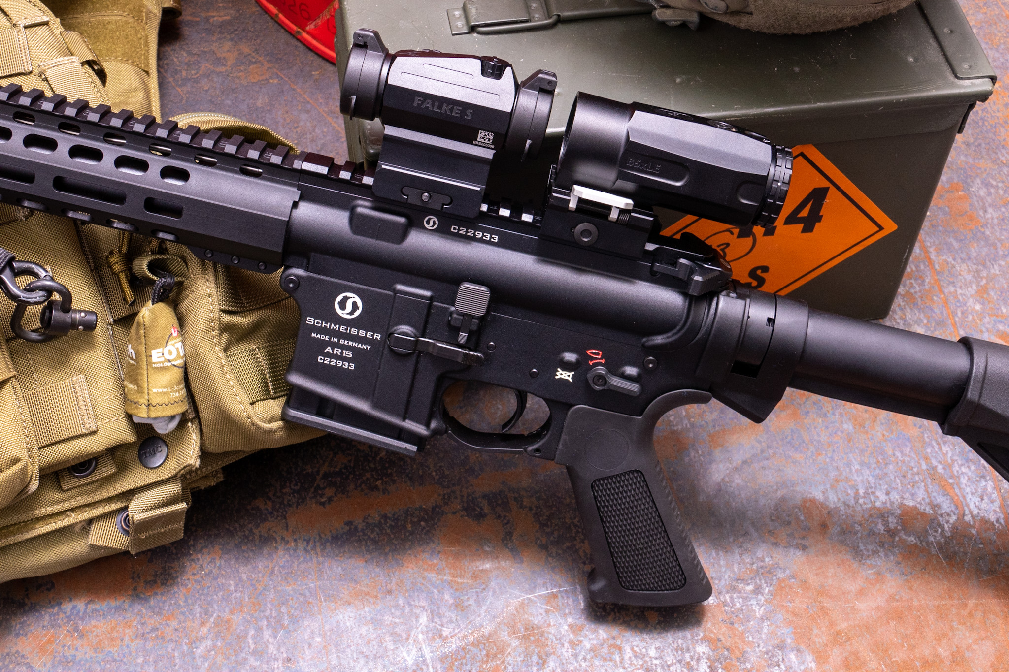 Der FALKE B5X ist ein leistungsstarker 5-fach Vergrößerungsaufsatz für Rotpunktvisiere und ermöglicht präzises Zielen auch auf größere Distanzen. Seine hochwertige, mehrschichtvergütete Optik sorgt für brillante Bildqualität mit klarer Randschärfe. Das robuste, stoß- und wasserresistente Gehäuse gewährleistet Zuverlässigkeit selbst unter härtesten Bedingungen. Mit dem praktischen Quick-Flip-Montagesystem kann der B5X blitzschnell in oder aus der Visierlinie geschwenkt werden, ohne das Trefferbild zu verändern. Kompakt, vielseitig und professionell – die ideale Ergänzung für Anwender, die maximale Präzision und Flexibilität verlangen.